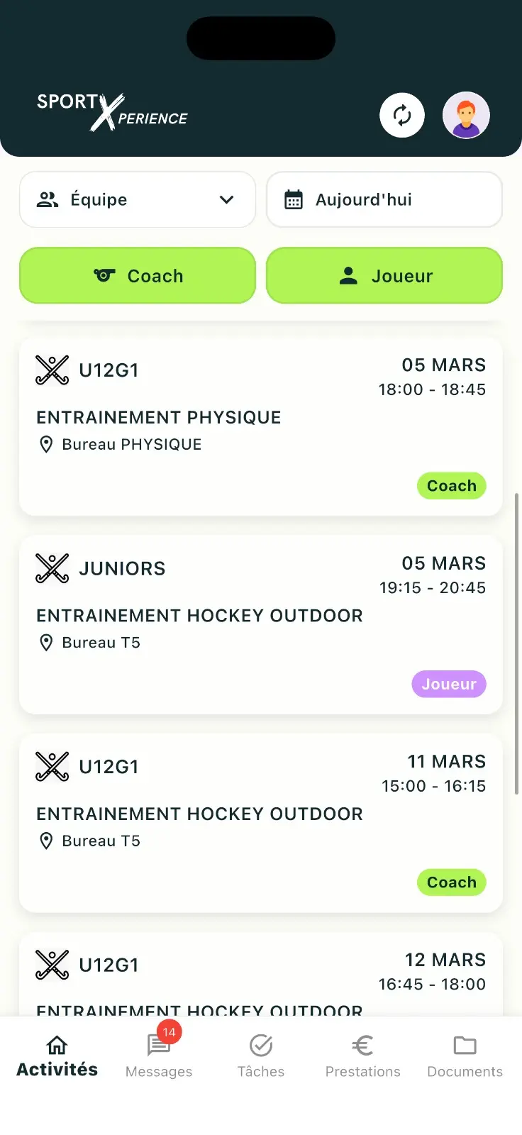 Visualisez et gérez toutes vos activités (entraînements, matchs, événements) en un seul endroit.